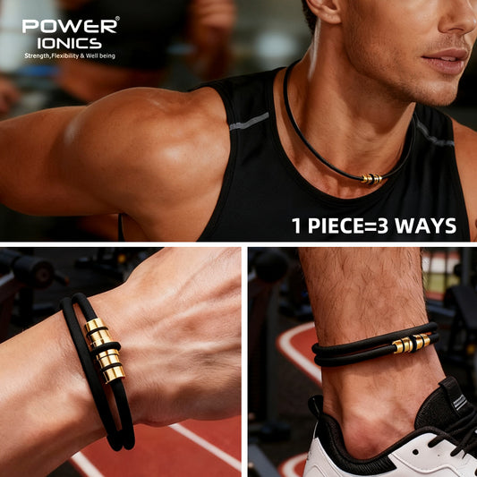 POWER IONICS Dark Warrior Black Gold Necklace 3-in-1 Wearable Design- High Anions Silicone Unisex Design